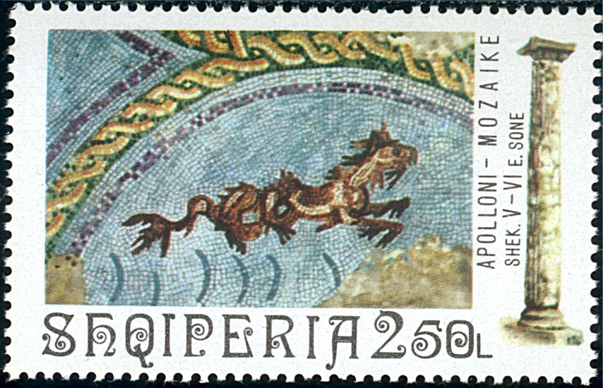 Katalogangabe (Michel): <Ausgabedatum> 20. Februar 1974; <Anlass> Antike Mosaiken; <Bildinformation> Mosaiken aus Butrint, Pogradec und Apollonia (5. - 6. Jh.)
