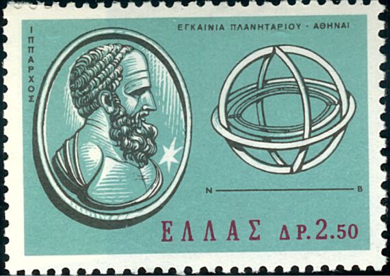 Katalogangabe (Michel): <Ausgabedatum> 21. Oktober 1965; <Anlass> Eugenides-Stiftung; <Bildinformation> Hipparchos (190 - 120 v. Chr.), Astronom der Antike und das von ihm gebaute Messgerät (Astrolabium) zur Beobachtung der Sterne Hipparchos von Nikaia, um 190-125 v. u. Z., einer der bedeutendsten Astronomen der Antike, der entgegen der bislang vorwiegend theoretisch-spekulativ betriebenen