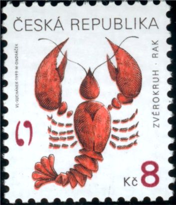 Katalogangabe (Michel): <Ausgabedatum> 8. September 1999; <Anlass> Freimarken: Tierkreiszeichen; <Bildinformation> Krebs