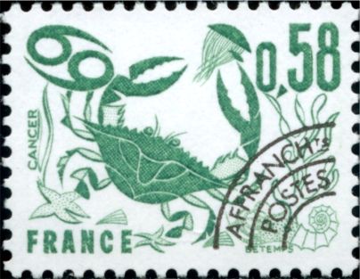 Katalogangabe (Michel): <Ausgabedatum> 17. Januar 1978; <Anlass> Freimarken mit schwarzem Buchdruck-Aufdruck der Vorausentwertung: Tierkreiszeichen; <Bildinformation> Krebs