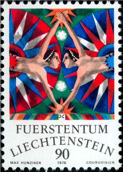 Katalogangabe (Michel): <Ausgabedatum> 9. September 1976; <Anlass> Tierkreiszeichen; <Bildinformation> Zwillinge