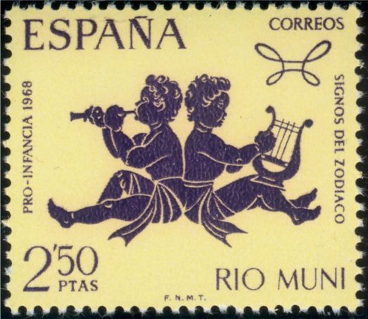 Katalogangabe (Michel): <Ausgabedatum> 25. April 1968; <Anlass> Jugend: Tierkreiszeichen <Bildinformation> Zwillinge