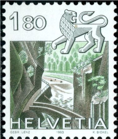 Katalogangabe (Michel): <Ausgabedatum> 17. Februar 1983; <Anlass> Freimarken: Tierkreiszeichen und Landschaften; <Bildinformation> Löwe; Areuse-Schlucht