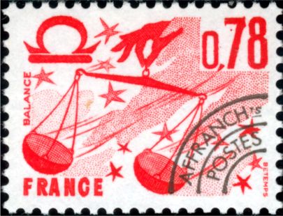 Katalogangabe (Michel): <Ausgabedatum> 1. Juli 1978; <Anlass> Freimarken mit schwarzem Buchdruck-Aufdruck der Vorausentwertung: Tierkreiszeichen; <Bildinformation> Waage