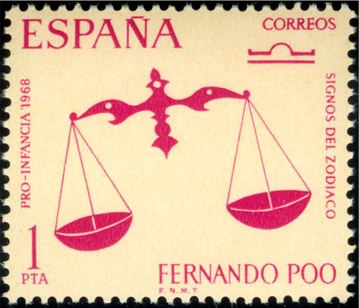 Katalogangabe (Michel): <Ausgabedatum> 25. April 1968; <Anlass> Für die Jugend: Tierkreiszeichen <Bildinformation> Waage
