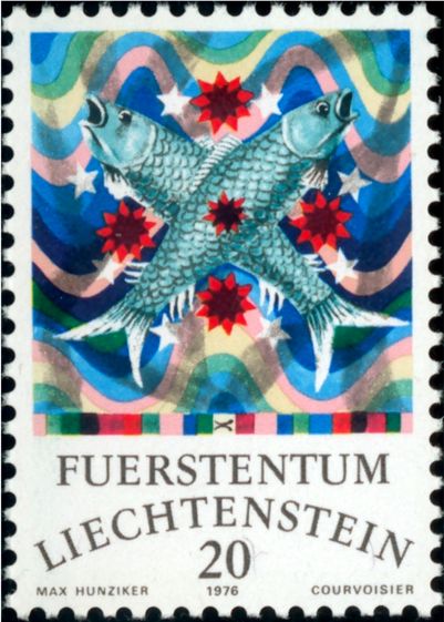 Katalogangabe (Michel): <Ausgabedatum> 9. September 1976; <Anlass> Tierkreiszeichen; <Bildinformation> Fische
