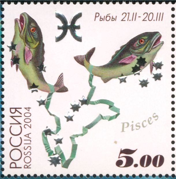 Katalogangabe (Michel): <Ausgabedatum> 21. April 2004; <Anlass> Tierkreiszeichen; <Bildinformation> Fische