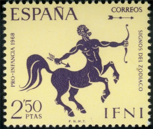 Katalogangabe (Michel): <Ausgabedatum> 25. April 1968; <Anlass> Kinderhilfe: Tierkreiszeichen <Bildinformation> Schütze