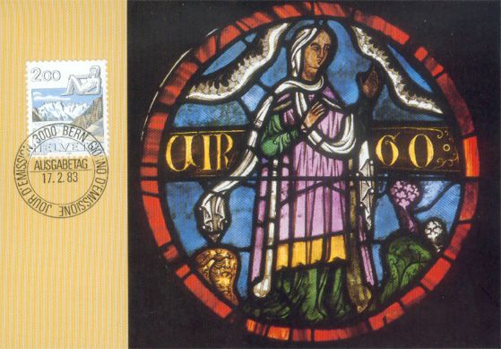 Katalogangabe (Michel): <Ausgabedatum> 24. November 1983; <Anlass> Freimarken: Tierkreiszeichen und Landschaften; <Bildinformation> Jungfrau; Schwarzsee bei Zermatt