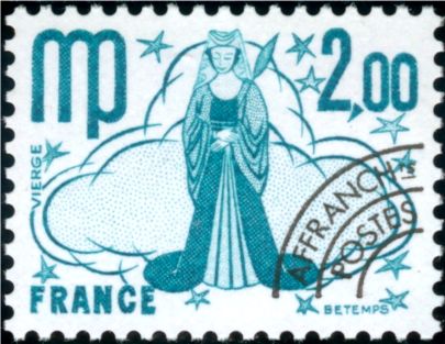 Katalogangabe (Michel): <Ausgabedatum> 17. Januar 1978; <Anlass> Freimarken mit schwarzem Buchdruck-Aufdruck der Vorausentwertung: Tierkreiszeichen; <Bildinformation> Jungfrau