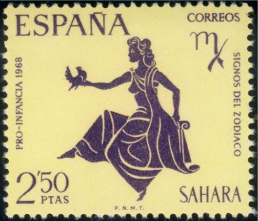 Katalogangabe (Michel): <Ausgabedatum> 25. April 1968; <Anlass> Für die Jugend: Tierkreiszeichen <Bildinformation> Jungfrau