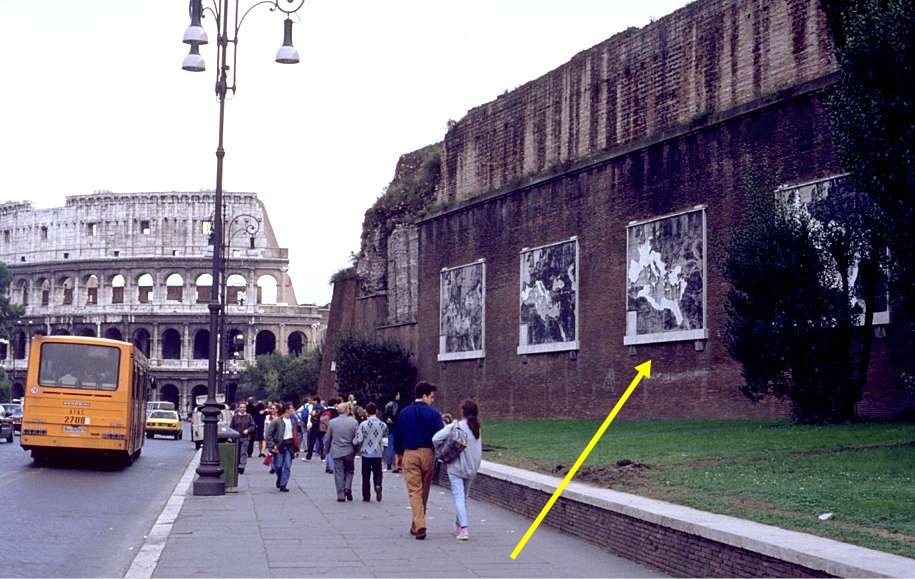 Westlich des Kolosseums, an der Nordmauer der