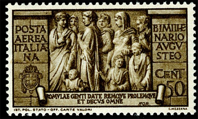 Im Jahre 17. v. Chr. veranlasste Augustus eine Säkularfeier, um damit den Beginn einer neuen Zeit anzuzeigen. Dazu verfasste Horaz ein Kultlied, das "carmen saeculare". Aus ihm stammt das Zitat dieser Marke (carmen saeculare 45-48, zitiert 47f.):
