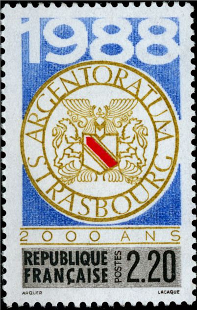 67- STRASSBURG Katalogangabe (Michel): <Ausgabedatum> 24. September 1988; <Anlass> 2000 Jahre Stadt Straßburg; <Bildinformation> Stadtwappen Auf seiner offiziellen