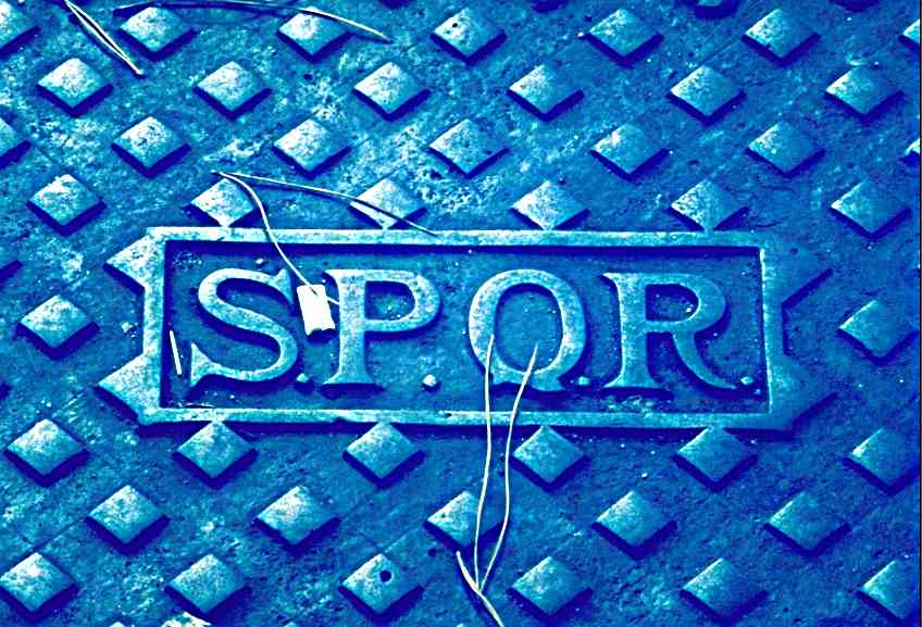 Abkürzung für die römische Stadtverwaltung und auf jedem Kanaldeckel
