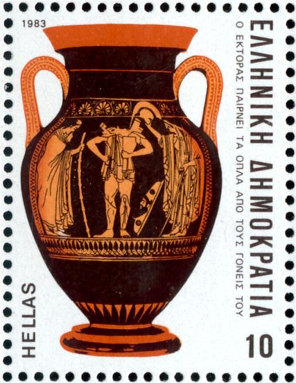 Katalogangabe (Michel): <Ausgabedatum> 19. Dezember 1983; <Anlass> Freimarken: Die epischen Dichtungen Homers; <Bildinformation> Hektor erhält seine Rüstung