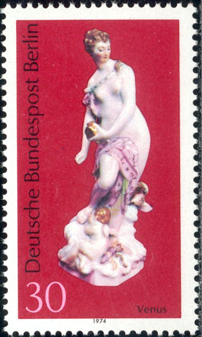 Katalogangabe (Michel): <Ausgabedatum> 29. Oktober 1974; <Anlass> Berliner Porzellan; <Bildinformation> Venus; Figur von Friedrich Elias Meyer d. Ä. (1723-1785), Bildhauer und Porzellan-Modelleur
