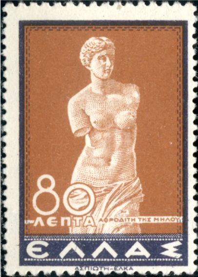 Katalogangabe (Michel): <Ausgabedatum> 1. November 1937; <Anlass> Freimarken: Darstellungen alter Bildwerke oder Geschichtsereignisse; <Bildinformation> Aphrodite von Melos (2. Jh. v. Chr.)