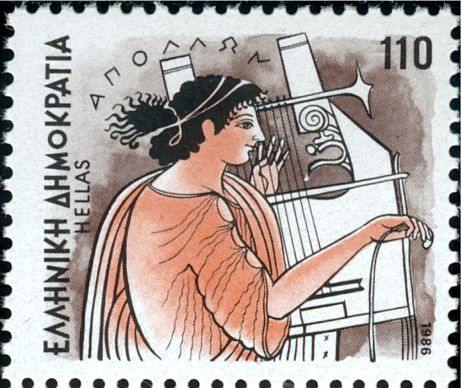 Katalogangabe (Michel): <Ausgabedatum> 17. Februar 1986; <Anlass> Freimarken: Die Götter des Olymp; <Bildinformation> Apollo Das Bild zeigt Apollon als Beschützer des Gesangs, deshalb mit seiner Leier abgebildet. |