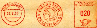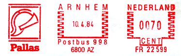 Pallas Athene, im deutschen Stempel mit Gesicht; beim niederländischen reicht der Helm zur Erkennung aus.