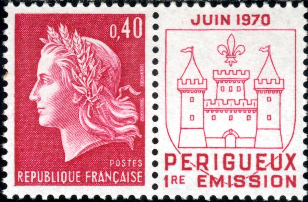 Katalogangabe (Michel): <Ausgabedatum> 13. Juni 1970; <Anlass> Freimarken: Marianne; <Bildinformation> Marianne mit Ähren- und Lorbeerzier im Haar Vom Bildtyp her klar eine (schöne!) Ceres-Darstellung: vergleiche die Darstellung der Demeter auf dem hier gezeigten griechischen Münzbild. Offensichtlich geht die Auffassung: Ceres : Marianne durcheinander |