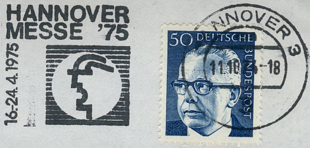 Stark stilisiert erkennt man hier im Messeemblem den Hermeskopf mit seinem Flügelhelm.