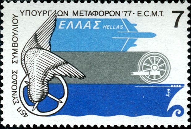 Schiff, Bahn und Flugzeug im Dienste des Hermes/Merkur, des Gottes des Handels,