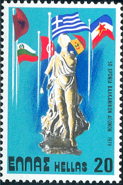Katalogangabe (Michel): <Ausgabedatum> 12. Mai 1979; <Anlass> Leichtathletik-Wettkämpfe der Balkanländer; <Bildinformation> Altgriechische Statue; Flaggen Bei dieser Statue handelt es sich um die Nike-Statue des Paionios, dazu s. meine Information zur Zypern-Marke mit dieser Nike. Weitere Informationen zu Nike-Briefmarken: http://www.mlahanas.de/Greeks/Arts/NikePaionios.htm |