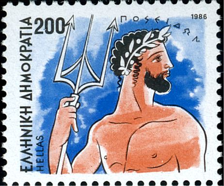 Katalogangabe (Michel): <Ausgabedatum> 17. Februar 1986; <Anlass> Freimarken: Die Götter des Olymp; <Bildinformation> Poseidon