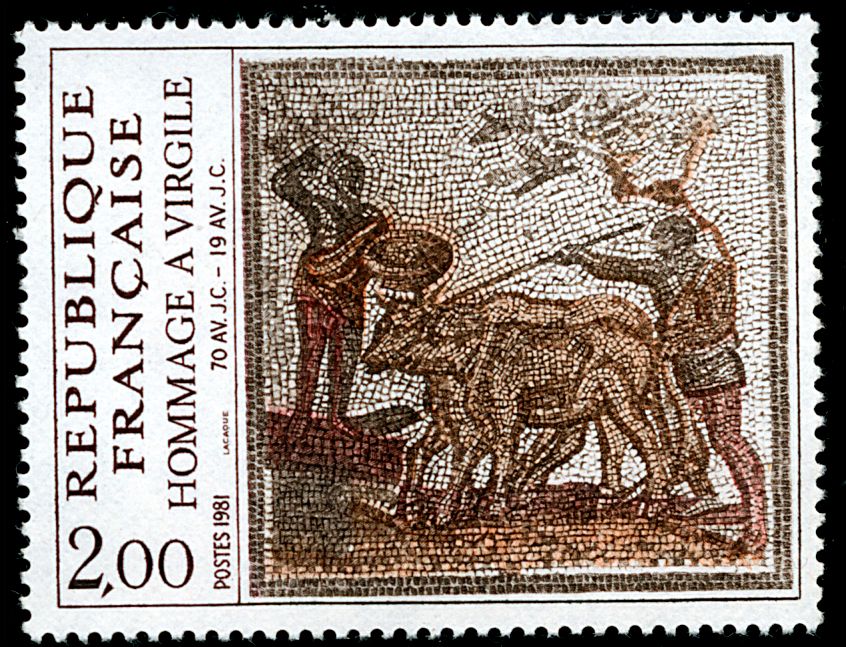Frankreich würdigt am 14. November 1981 mit einem Mosaik aus dem Museum Saint-Germain-en-Laye den Dichter der Georgika.
