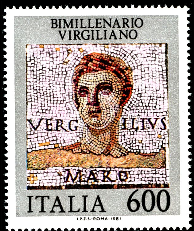 Italien würdigt am 19. September 1981 den Dichter Vergil (Vergilius Maro) mit einem Mosaik des 1. Jahrhunderts.