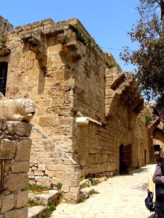 Westliche Innenseite der byzantinischen Festung mit Aufstiegsmöglichkeit. Links auf der Mauer der alte Löwenwasserspeier.