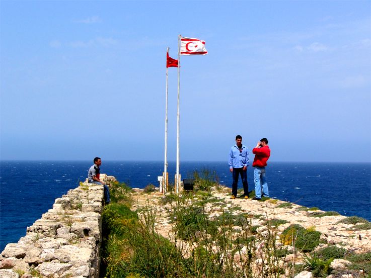 Vorne, quasi als Negativ der türkischen Flagge, die Fahne von Nordzypern.