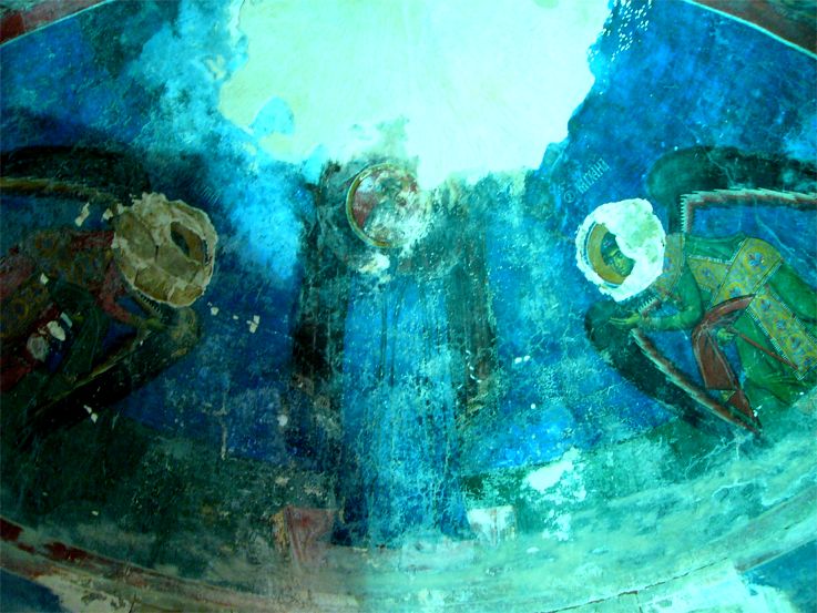 Das Fresko in der Apsis: die Mutter Gottes zwischen den Erzengeln Michael und Gabriel, wie es