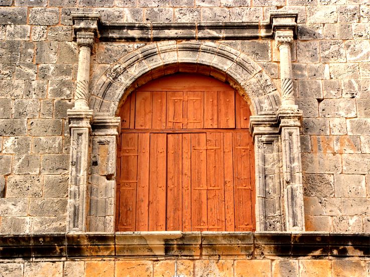 Fenster im Obergeschoss des Klosterturms von Ayia Napa.