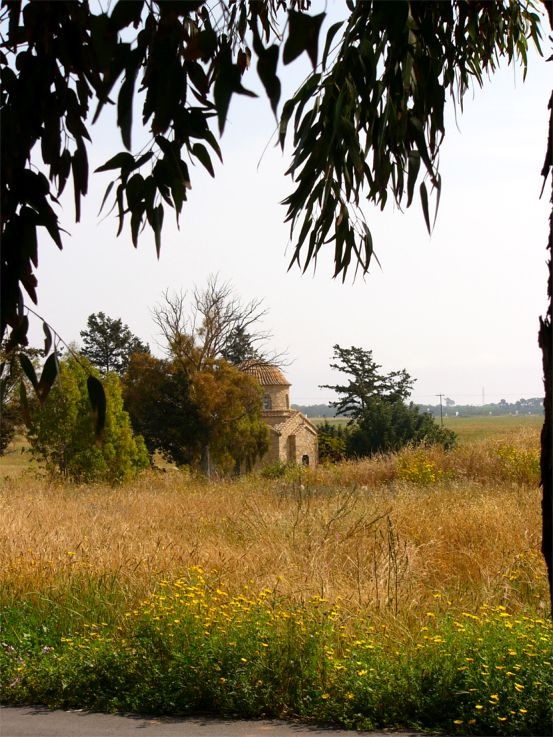 Die Grabeskirche in ihrer Umgebung, von Westen, also aus Richtung Klosterkirche gesehen.