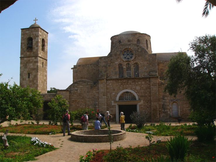 Kirche des Barnabasklosters von Westen; die Sicht der oberen Marke ist wohl die aus der Klosteranlage, von Südwesten; die untere Marke zeigt die Westfassade dieser Klosterkirche.