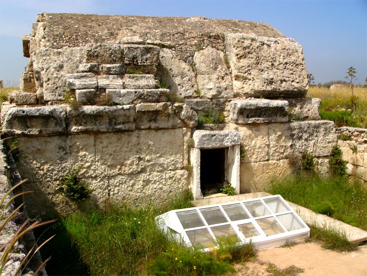 Dromos vor Grab 50 mit dem modern überdachten Pferdegrab.