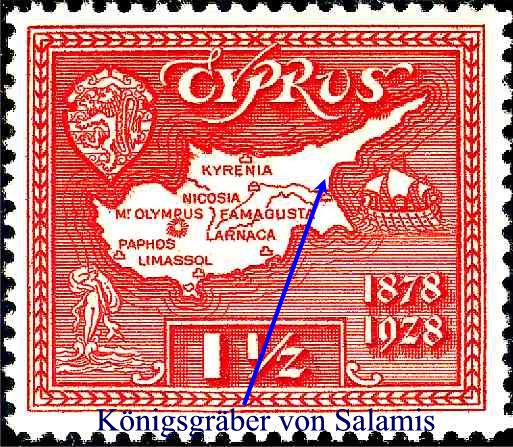 Etwa in der Mitte zwischen Salamis und dem Barnabaskloster, in Sichtweite des Klosters, liegen die Königsgräber von Salamis, eine Nekropole der Könige und Adligen von Salamis; das einfache Volk wurde etwas weiter südlich in einfachen Gräbern bestattet. Die Gräber bestehen jeweils aus einem Dromos, einem leicht abschüssigen Zugang, und der eigentlichen Grabkammer; bei einigen Gräbern befinden sich im Dromos vor der Kammer Pferdegräber, manchmal auch Menschengräber, weil Tiere und Sklaven mit den Edlen dieser Zeit mitbestattet werden konnten. | |||||