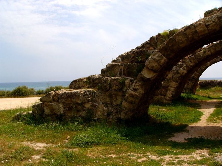 Blick an der Heizanlage der Thermen vorbei zum nahen Meer.