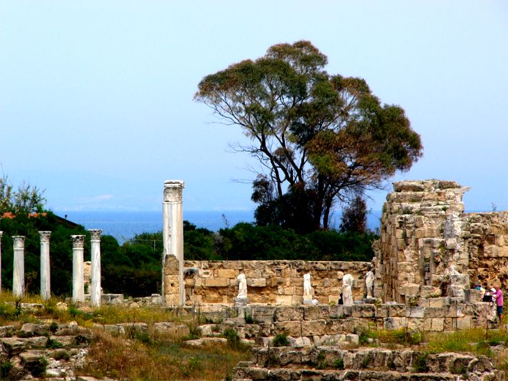 Blick über den nördlichen Annexraum mit seinen kopflosen Statuen hinweg zum Meer