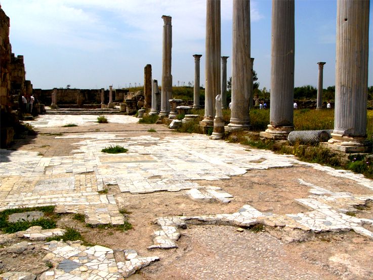 Blick über die Oststoa der Palästra hin zum südlichen Annexraum.