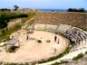 Besichtigt haben wir die auch zu Markenehren gekommenen beiden Sehenswürdigkeiten: die zu den Thermen gehörende Palästra mit ihren schönen Kolonnaden und das Theater. Salamis war über lange Zeiten die wichtigste Stadt Zyperns, nur zur Römerzeit wurde es von Paphos abgelöst. Nach den Arabereinfällen im 7. Jahrhundert stark zerstört, wurde es aufgegeben und durch Ammochostos, das spätere Famagusta, ersetzt. |