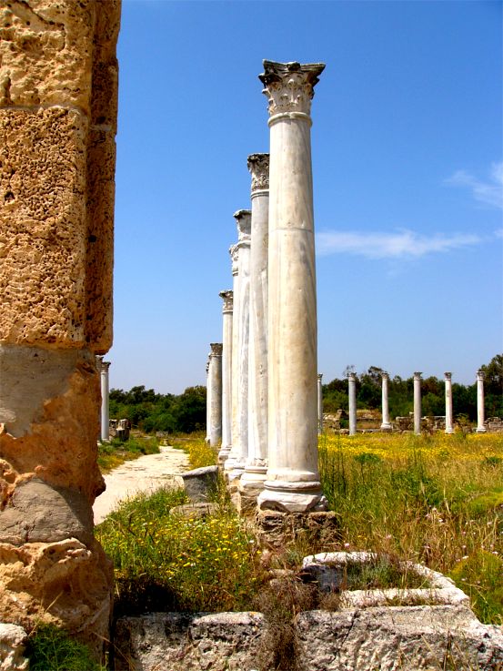Südreihe und im Hintergrund die Westreihe der Säulen in der Palästra von Salamis.