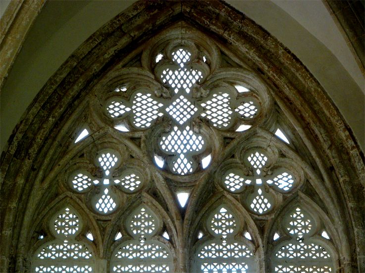 Statt buntem Fensterglas apartes Steinmaßwerk.