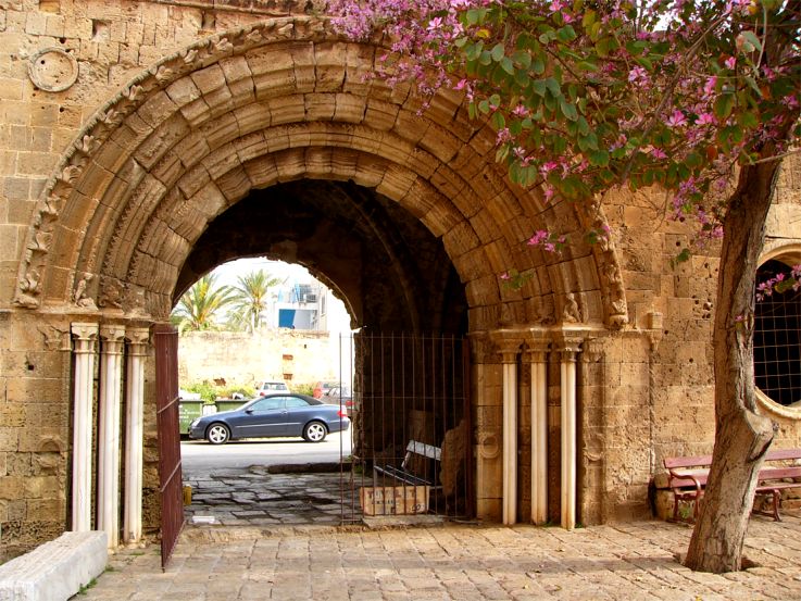 Portal der Loggia, die jetzt als Reinigungsraum dient. Am rechten Ansatz der Archivolten sitzt der