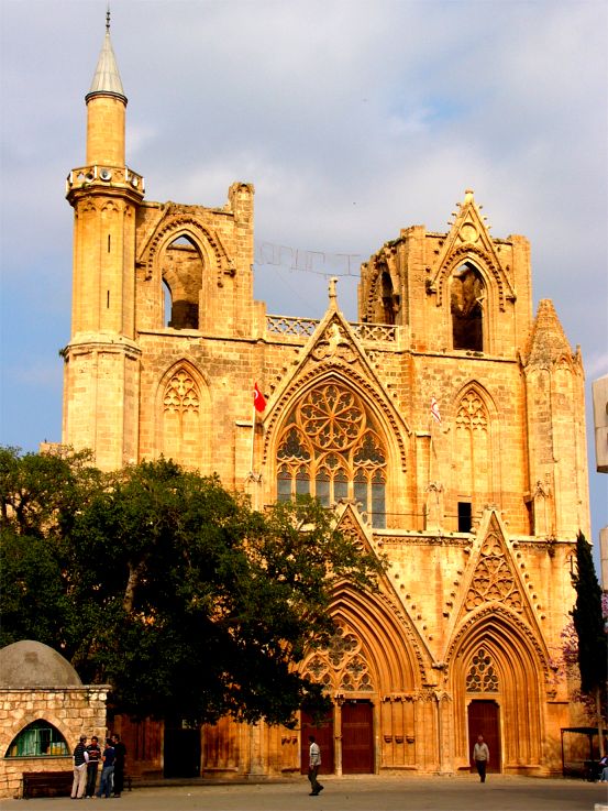 Westfassade mit ihren drei Portalen, dem Rosengeschoss, den beiden Türmen und dem kleinen Minarettaufsatz.