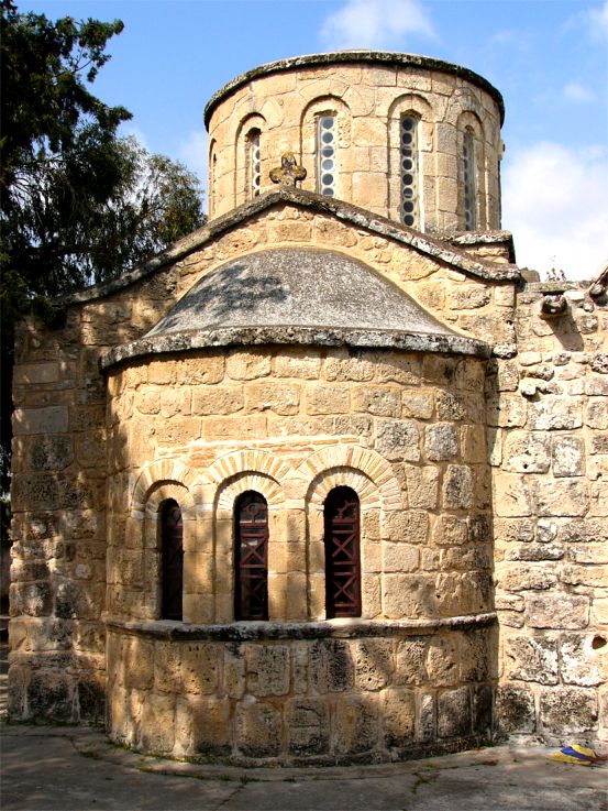 Südliche Apsis der Panhagia Theotokou in Trikomo von Osten.
