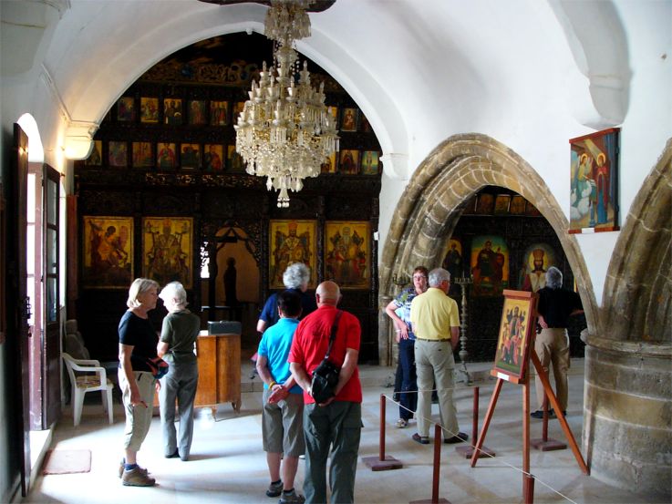 Nördliches Schiff der Panhagia Theotokou mit Blick auf die dieses Schiff abschließende Ikonostase.