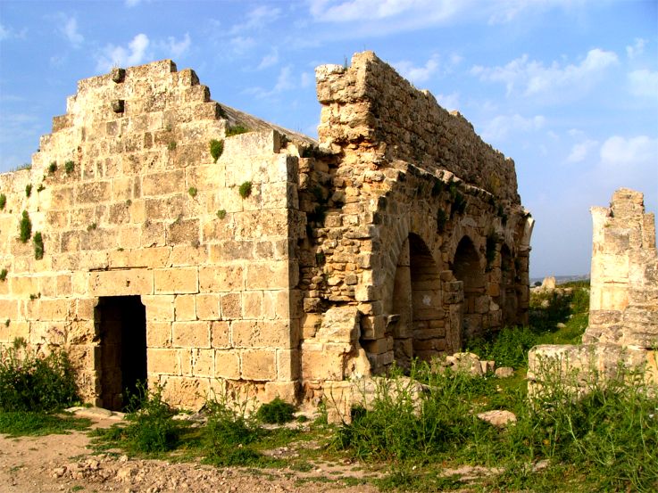 Noch gewölbtes nördliches Seitenschiff der Georgskirche, rechts daneben das Mittelschiff unter freiem Himmel.